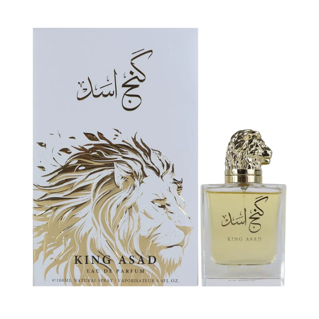 King Asad es un Eau de Parfum amaderado, especiado y cálido que encarna lujo y poder desde el primer spray. Abre con acordes especiados y cítricos vibrantes que energizan los sentidos; evoluciona hacia un corazón de maderas ricas y resinas cálidas que aportan cuerpo y presencia. El fondo de ámbar, almizcle y cuero deja una estela sensual, elegante y dominante, con un carácter moderno inspirado en Santal 33.