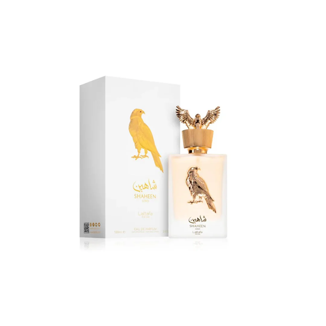 Shaheen Gold es un Eau de Parfum ambarado-especiado oriental, que combina intensidad, refinamiento y estatus olfativo. Un aroma diseñado para dejar huella.