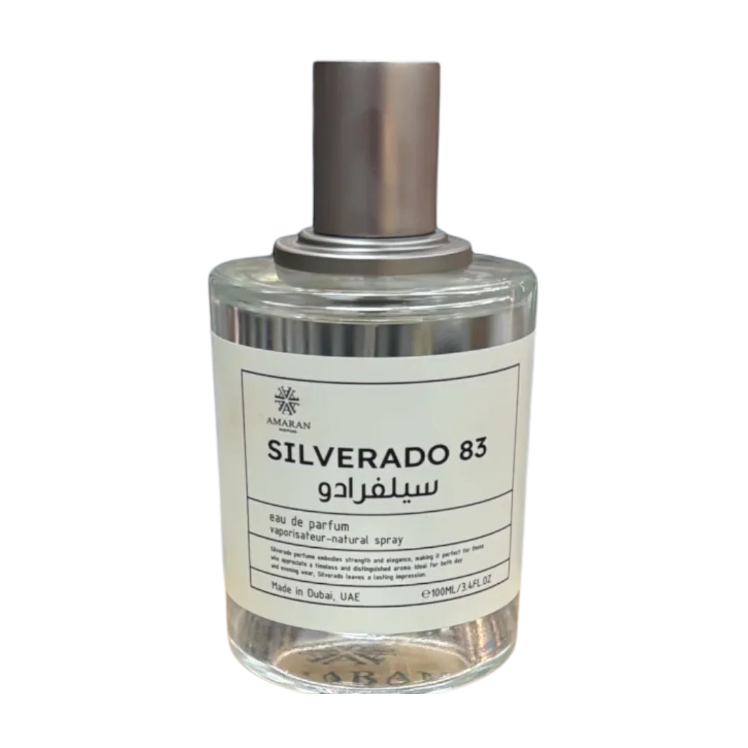 Silverado 83 es la opción más versátil y equilibrada de la trilogía. Su aroma es fresco con un toque especiado y masculino. Abre con toronja, jengibre y cardamomo, seguido de un corazón donde reinan la lavanda, el vetiver y el incienso blanco. El fondo es de cuero suave, madera de ámbar y almizcle seco.